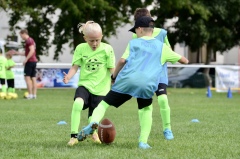 Am Freitag folgte nach der Eröffnung die erste Trainingseinheit. Diese wurde, wie auch jene der kommenden zwei Tage, im Stationsbetrieb absolviert. Bei den professionellen Übungen standen den Kindern und Jugendlichen zahlreiche Griesheimer Trainer zur Seite. Sie gaben nicht nur den einen oder anderen hilfreichen Tipp, sondern sorgten auch für die notwendige Motivation und den dazugehörigen Spaß. So waren manche Pass-, Schuss- oder Dribbelübungen gut eingebettet in Freude bereitende Wettkampfformen. Am Ende eines jeden Tages fanden in den verschiedenen Altersklassen und unter den neugierigen Augen der Eltern die Finals der Einzelwettbewerbe statt. Dabei wurden nicht nur die Spieler/innen mit dem härtesteten Schuss sondern auch diverse Elfmeter- und Dribbelkönige gesucht. Gekürt wurden zudem der Spieler oder die Spielerin des Tages. Um das zu werden, waren nicht nur die fußballerischen Qualitäten entscheidend, sondern auch die Achtung und Umsetzung von Werten, die den Sport auszeichnen. Beispielsweise Teamgeist, Disziplin, Toleranz, Respekt, Fairplay und Spaß.
